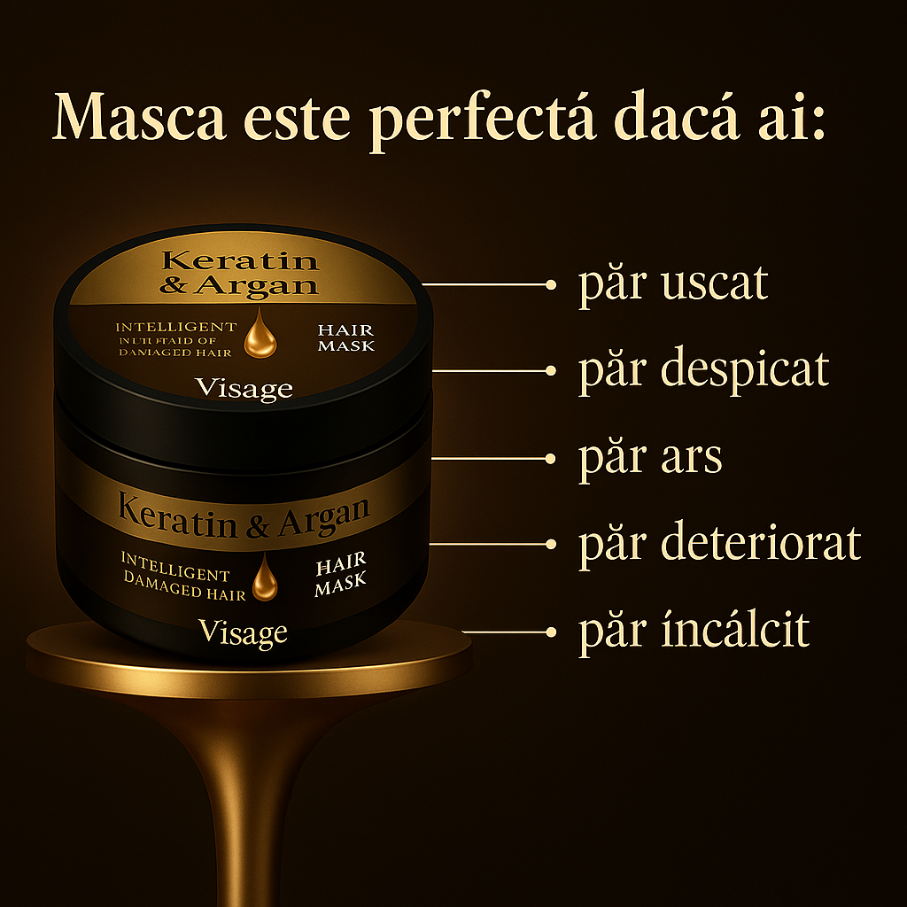 👉Masca de Par Profesionala Visage cu Cheratina si Ulei Argan este un tratament intensiv, conceput special pentru a repara si revitaliza firul de par deteriorat.