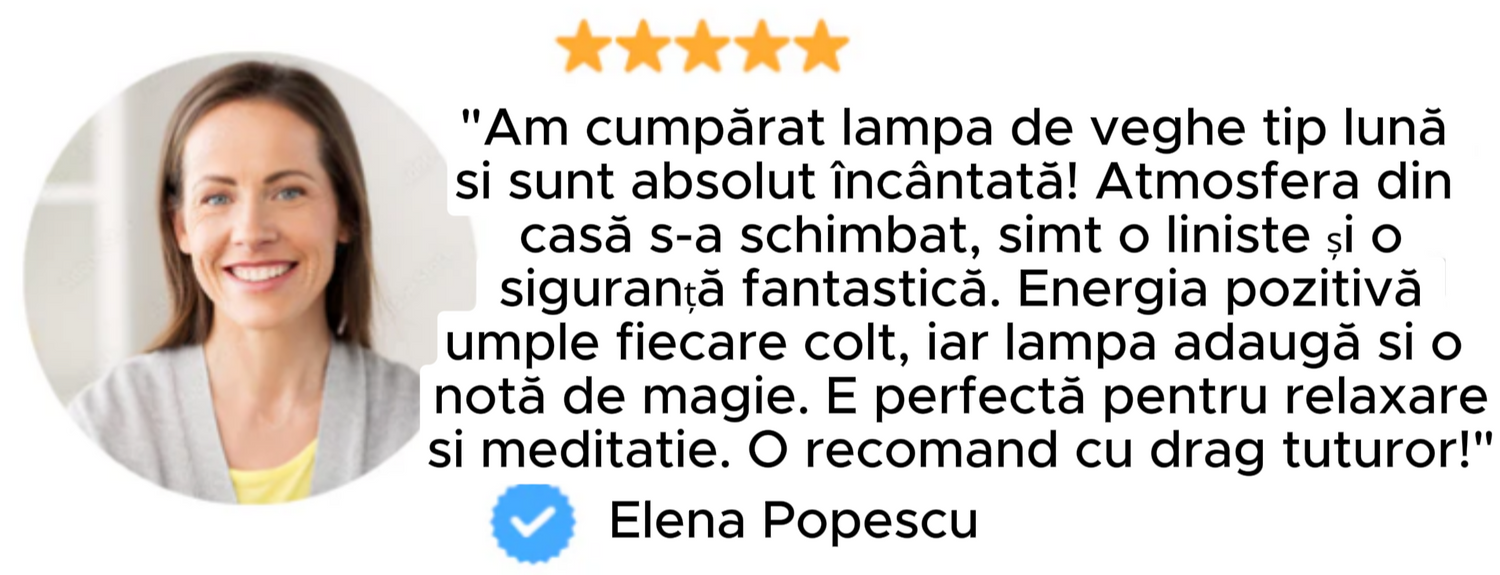 Lampa de veghe tip lună a transformat atmosfera din casa mea! Mă simt mai linistită și dorm mult mai bine. O recomand cu drag!